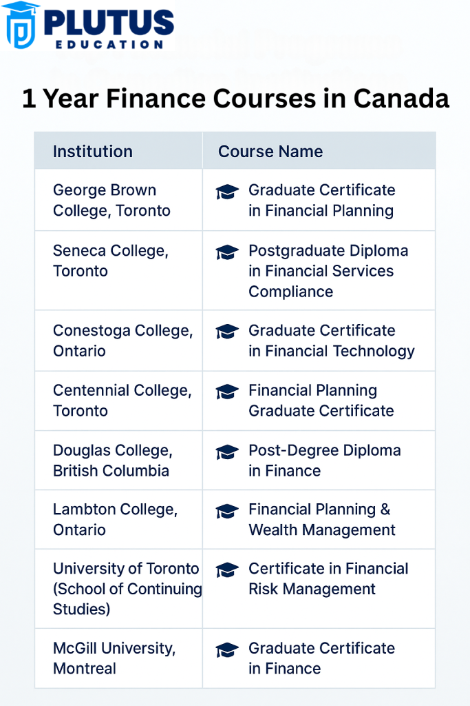Lambton College, Ontario | Financial Planning & Wealth Management | Postgraduate Diploma | 1 Year | Graduate or diploma holder | Combines financial planning, investment and client relationship training |